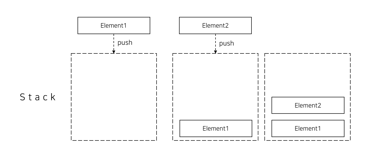 push 연산은 stack에 값을 채워 넣는 연산이다. push 연산을 수행할 때마다 stack에 값이 순차적으로 채워진다.