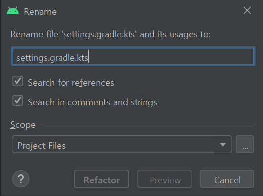setting.gradle은 gradle 프로젝트를 세팅 하기 위한 정보를 포함한다. 이 gradle 파일을 setting.gradle.kts로 변경하여야 한다.