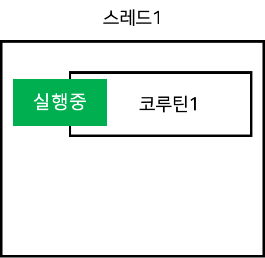 하나의 스레드에서 여러 코루틴이 서로 스레드를 양보해가며 실행될 수 있다.
