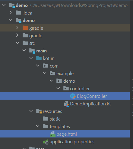 즉 category/Kotlin으로 접속하면 Controller는 "page" 반환한다.