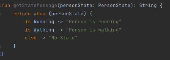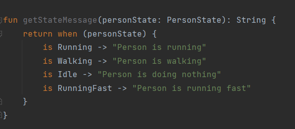 [그림1]에서와 달리 [그림4]에서는 오류가 생기지 않는다. 이유는 컴파일러에서 sealed class PersonState의 자식 클래스는 Running, Walking, Idle 세가지만 있는 것을 알고 있기 때문이다. 따라서 when에 else branch를 사용하지 않고도 필요한 메세지만 수신할 수 있게 되었다.