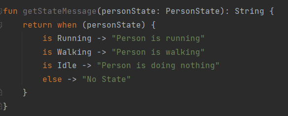 각 PersonState별로 상태 메세지를 얻고 싶다고 해보자. 이를 위해 getStateMessage 함수를 [코드2]와 같이 작성한다.