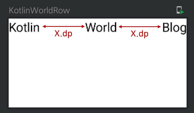 위의 Kotlin과 Blog가 양끝에 여유공간이 없이 붙어있는 것을 확인할 수 있으며 Compose 컴포넌트간의 간격이 동일한 것을 확인할 수 있다.