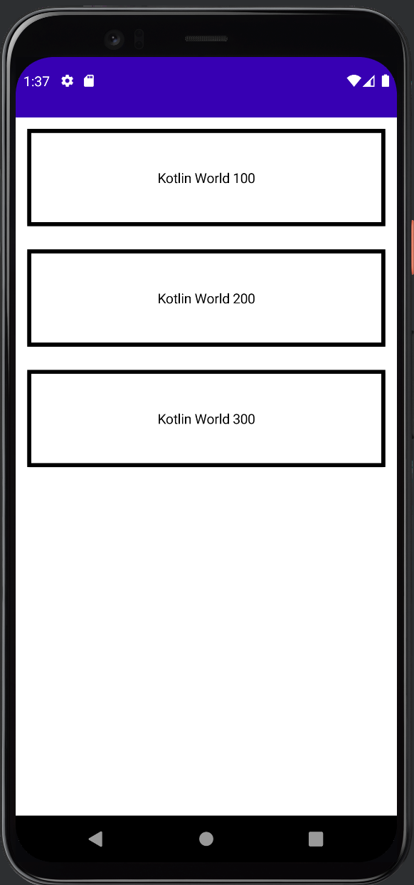 - itemsIndexed의 인자로 listOf(100,200,300) 을 넘김으로써 아이템 3개의 생성한다.