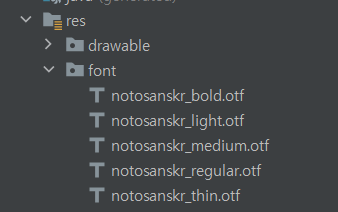 - Android Project에 font 리소스 폴더 만들고 1에서 다운받은 폰트들 넣기