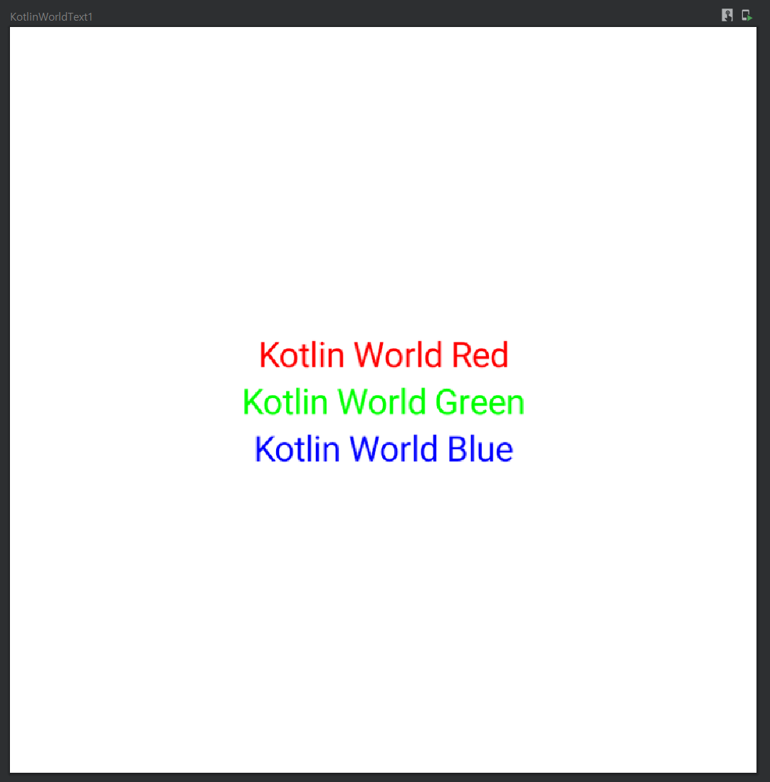 Text(text = "Kotlin World Red", color = Color(0xFFFF0000))