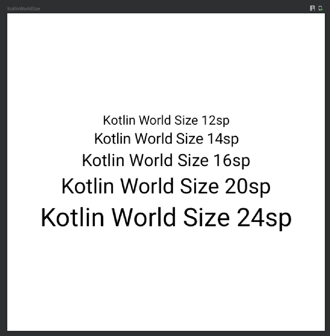 Text(text = "Kotlin World Size 20sp", fontSize = 20.sp)