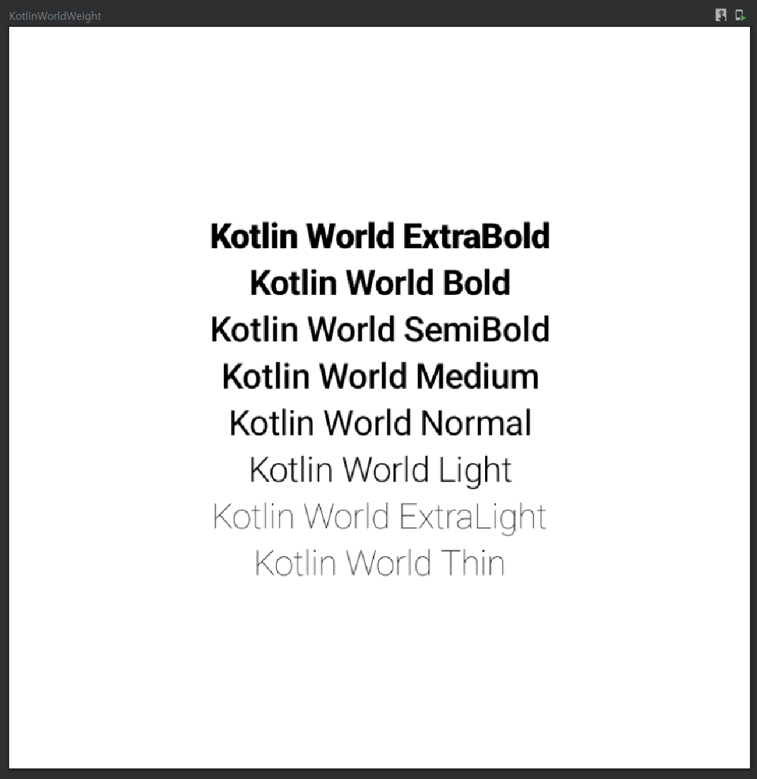 Text(text = "Kotlin World ExtraLight", fontWeight = FontWeight.ExtraLight)