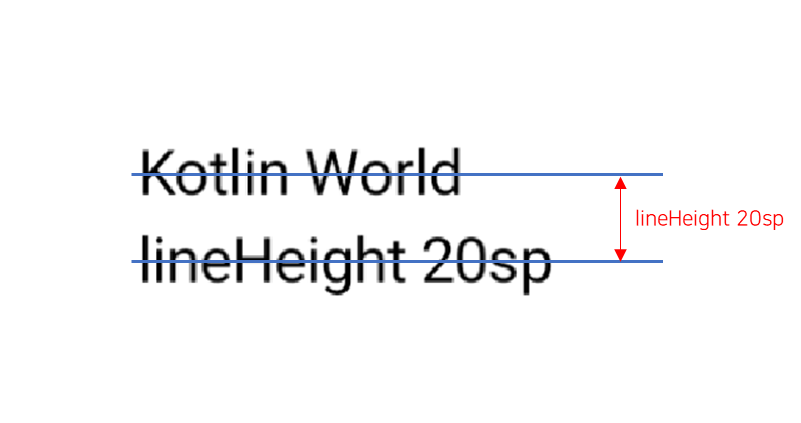 Text(text = "Kotlin\nWorld\nlineHeight 20sp", lineHeight = 20.sp)