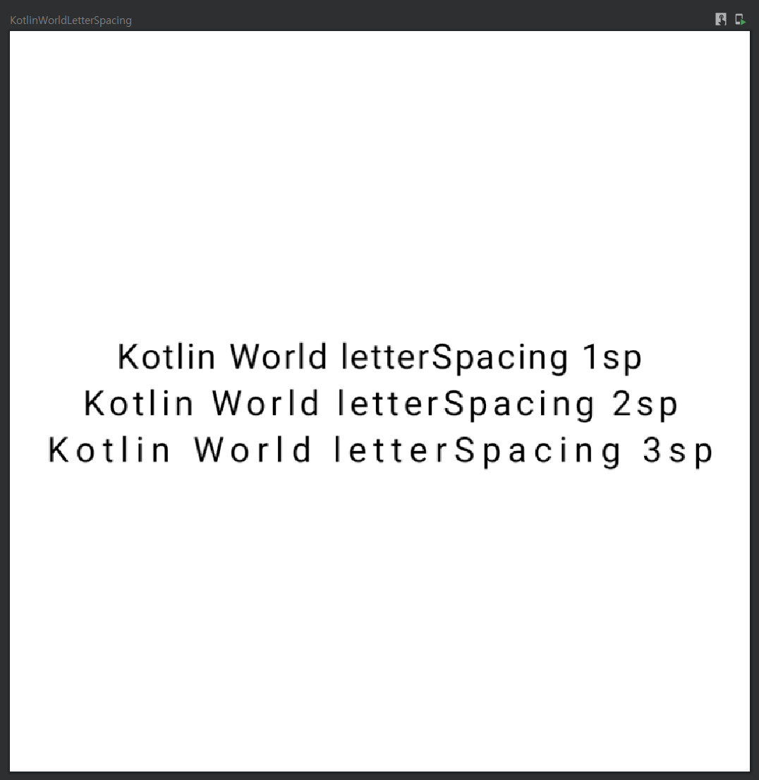 Text(text = "Kotlin World letterSpacing 1sp", letterSpacing = 1.sp)