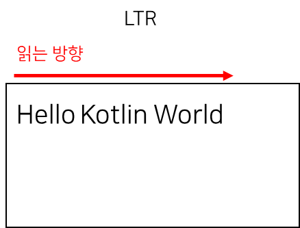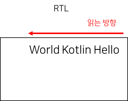 - 단어를 쓰는 방향은 LTR과 RTL이 동일하다(Hello, Kotlin, World)