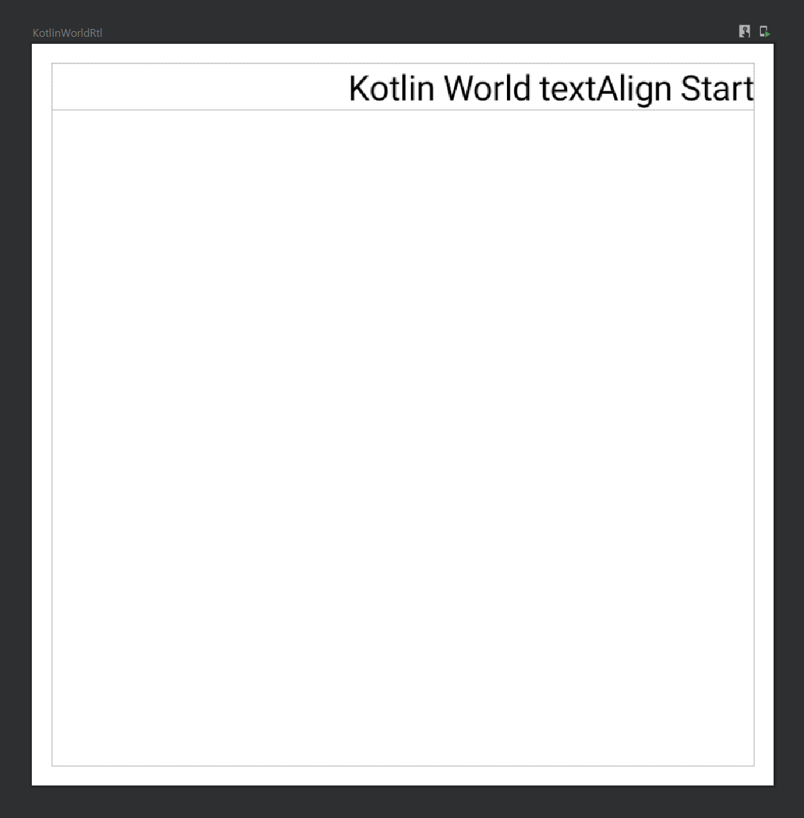 Text(text = "Kotlin World textAlign Start", modifier = Modifier.fillMaxWidth(), textAlign = TextAlign.Start)