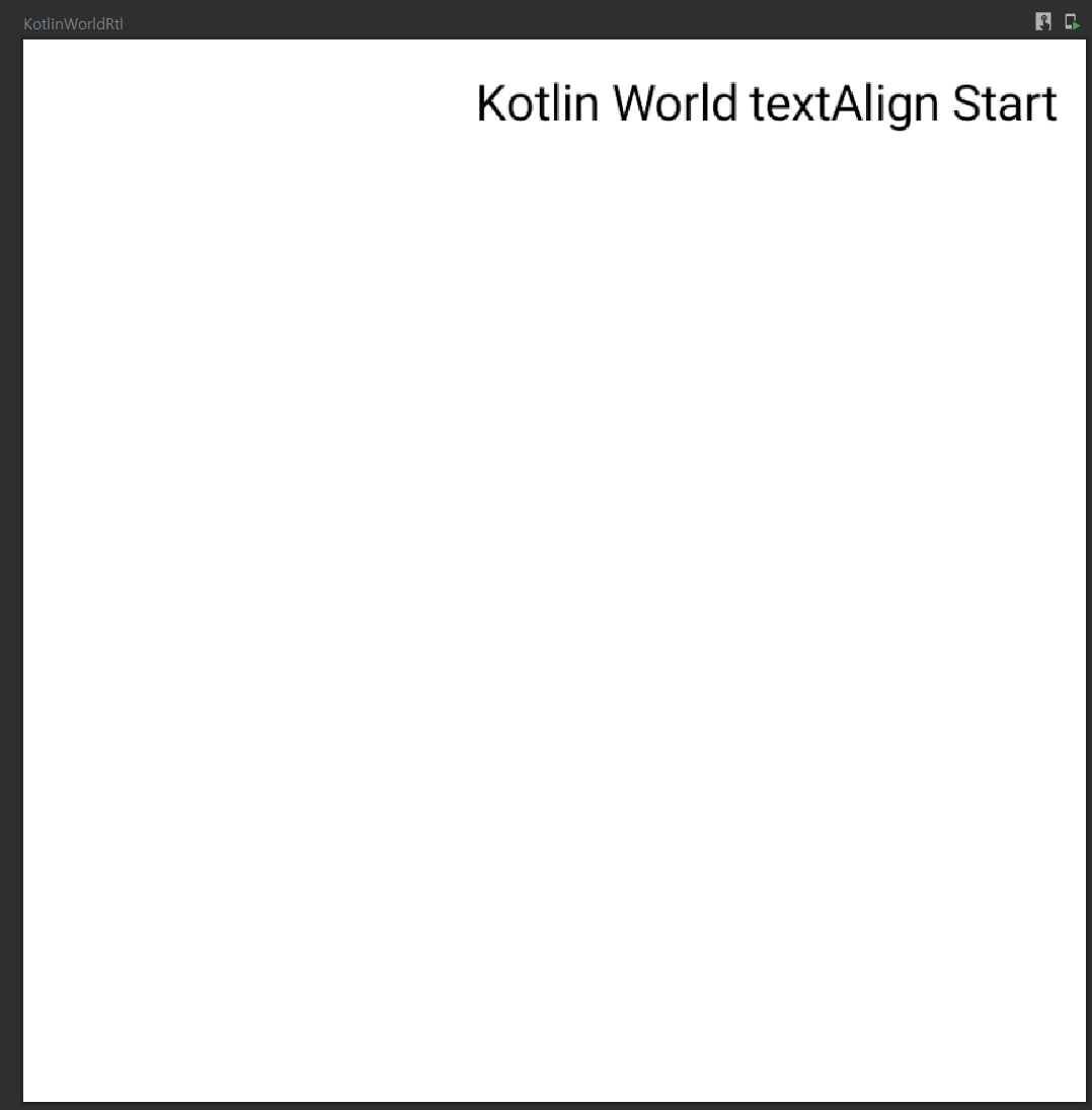 Text(text = "Kotlin World textAlign Start", modifier = Modifier.fillMaxWidth(), textAlign = TextAlign.Start)