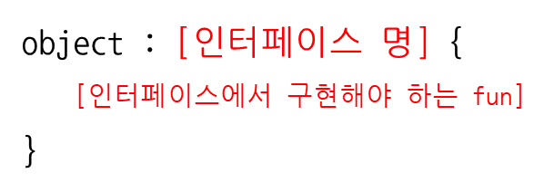 Kotlin에서는 이를 object라는 하나의 키워드를 통해 구현할 수 있다. 먼저 무명 객체가 왜 필요한지 살펴본 후, 무명 객체를 어떻게 구현하는지 확인하도록 하자.
