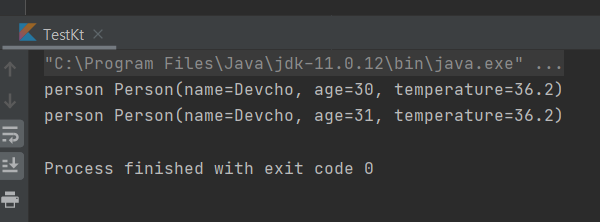val person = Person(name = "Devcho", age = 29, temperature = 36.5f)