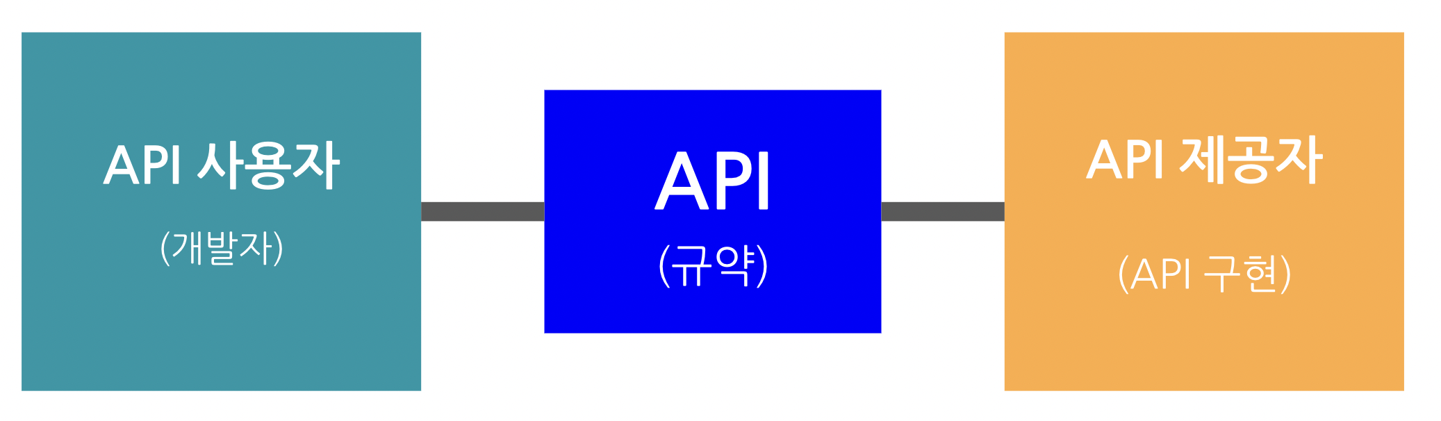 요약하면 API에는 API, API 제공자, API 사용자(개발자) 3가지 구성요소가 있으며, API를 정의한 후에 API 제공자가 개발자와 약속한 규약에 맞추어 구현을 하고 개발자는 API을 사용한다.