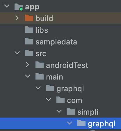 3. 모듈 수준의 main 디렉토리에 graphql 디렉토리를 만든 후 2에서 설정한 패키지명의 폴더들을 만든다.
