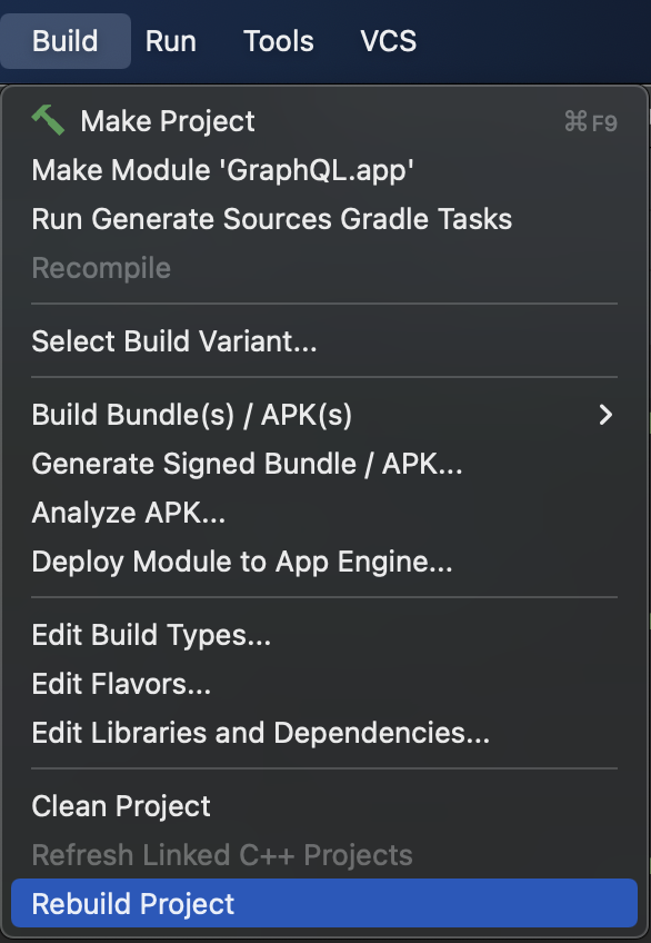 2. 쿼리 작성이 완료되면 Build-Rebuild Project를 선택해 프로젝트를 다시 빌드한다.