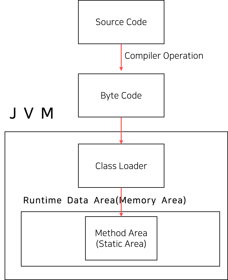 아래에서는 JVM에서 어떻게 java나 kt파일이 메모리에 올라가 실행되는지를 도식화하였다. 아래 그림2를 살펴보자.
