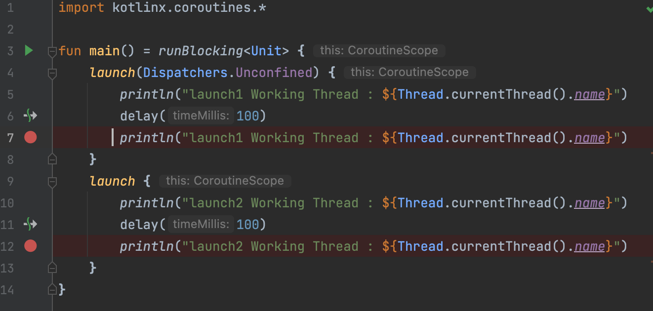 Kotlin Coroutines는 일시 중단 후에는 다른 스레드에서 실행될 수 있기 때문에 디버깅을 하기가 매우 어렵다. 이 글에서는 디버깅을 하기 어려운 예 중에 가장 간단한 예시를 제시할 것이다.