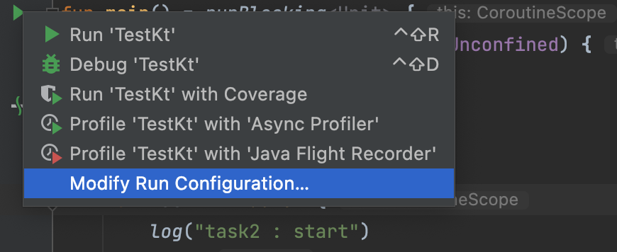 로깅을 통해 Coroutines 디버깅하기 위해서는 JVM을 위해 특정 옵션이 추가되어야 한다. 이를 추가하기 위해 아래 과정을 따라하자.