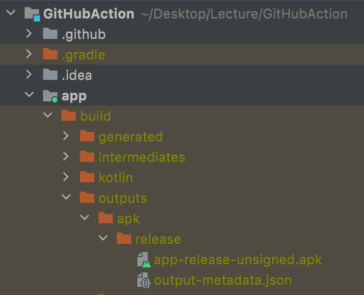 하지만 위 빌드에는 문제가 있었다. 바로 ./gradlew assembleRelease를 하면 아래 그림과 같이 build/output 폴더에 apk 파일이 나오게 되는데 이를 확인할 방법이 없는점이다.