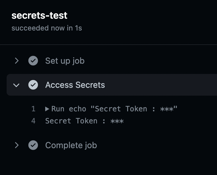 echo "Secret Token : ${{ secrets.TEST_TOKEN }}"