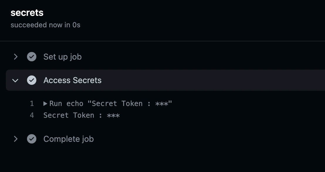 그러면 아래와 같이 secrets.TOKEN에 잘 접근되는 것을 확인할 수 있다.