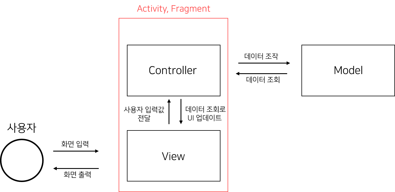 MVC : View와 Controller를 Activity, Fragment 클래스에서 담당