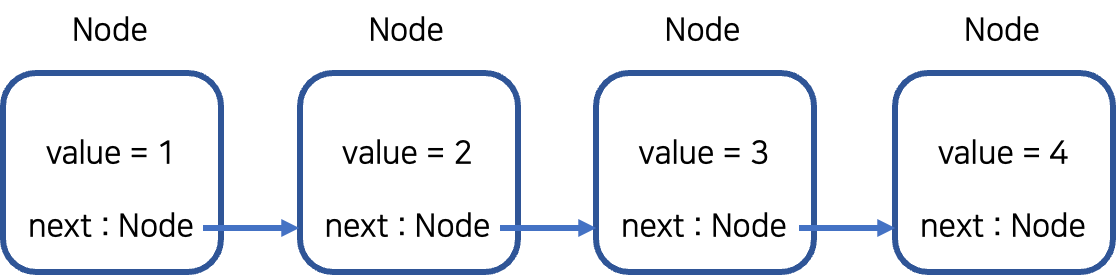 맨 앞 Node(head) 노드에 대한 참조만을 가지도록 만들면 아주 간단한 SinglyLinkedList가 완성된다. 맨 뒤(tail) 노드에 대한 참조를 추가로 가지게 할 수도 있다.