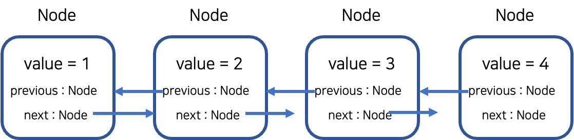 양방향 연결 리스트를 구현하기 위해서는 노드에 다음 노드에 대한 참조를 만들어야 한다.