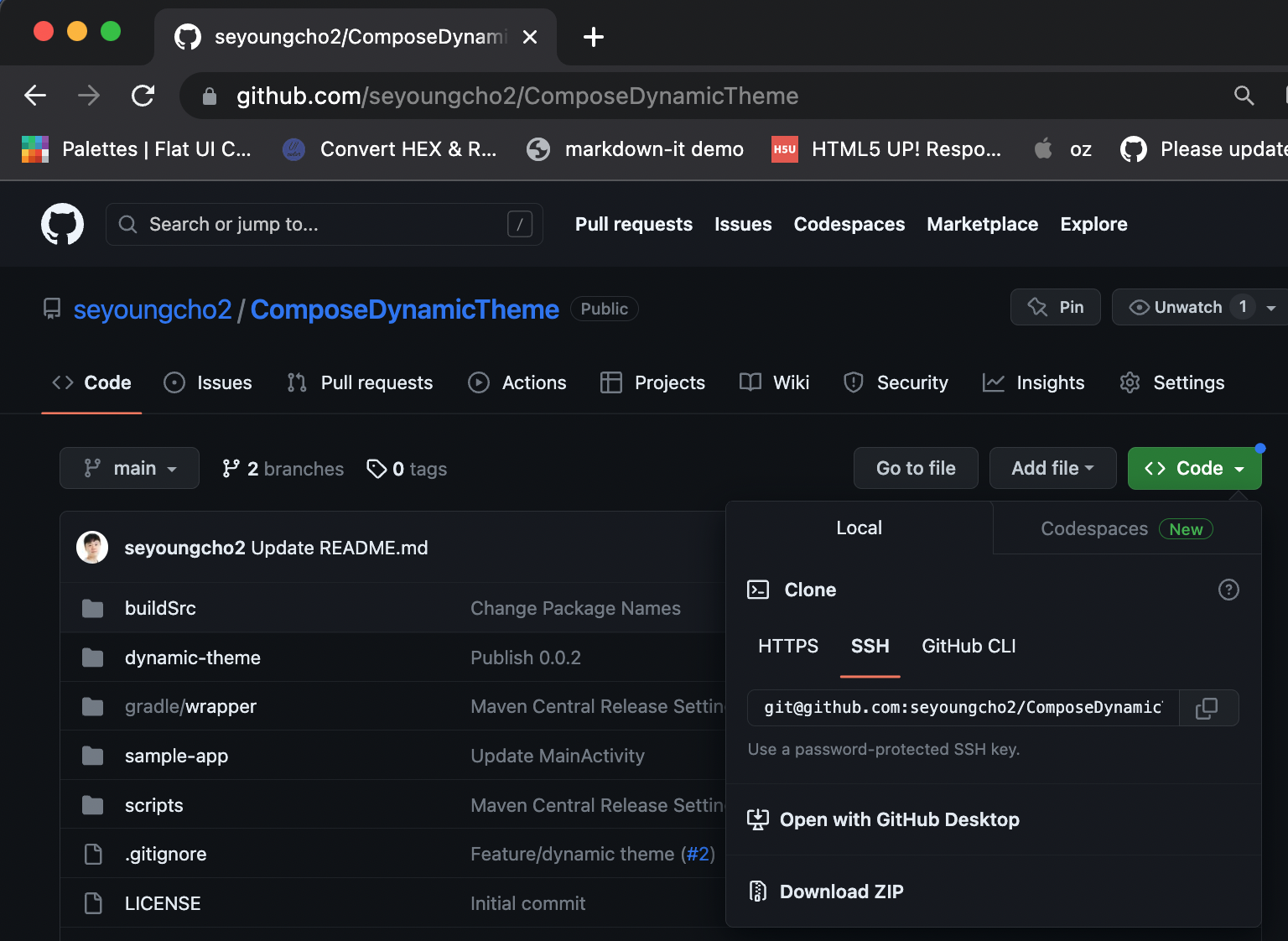 예를 들어 아이디가 seyoungcho2이고 Repository이름이 ComposeDynamicTheme이라면 git@github.com:seyoungcho2/ComposeDynamicTheme.git 와 같이 설정하면 된다.