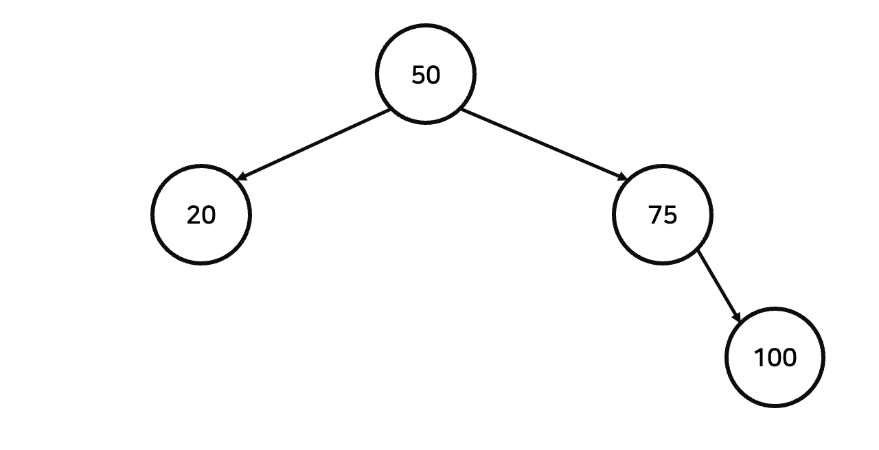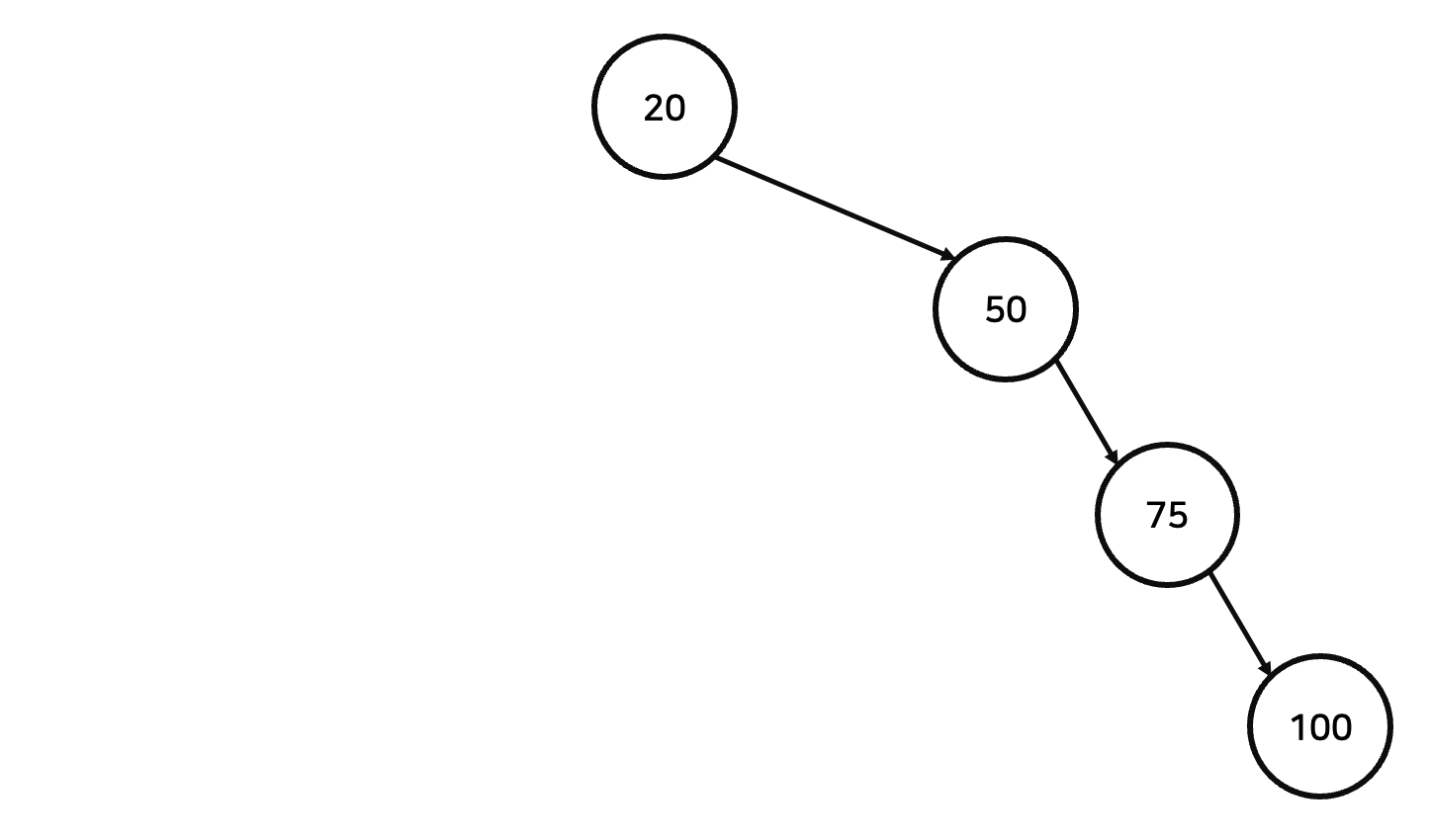 이런 경우 Binary Search Tree의 장점은 모두 사라진다. 예를 들어 위 그림2에서 100을 찾기 위해 모든 노드를 다 탐색해야 하며, 150을 더하기 위해서도 모든 노드를 탐색해야 하고, 100을 삭제하기 위해서도 모든 노드를 다 탐색해야 한다. 즉, 탐색에 효율적인 Binary Search Tree의 장점이 모두 사라지는 것이다.