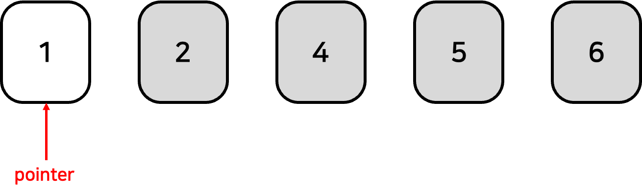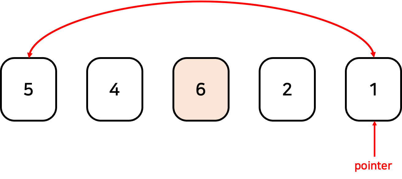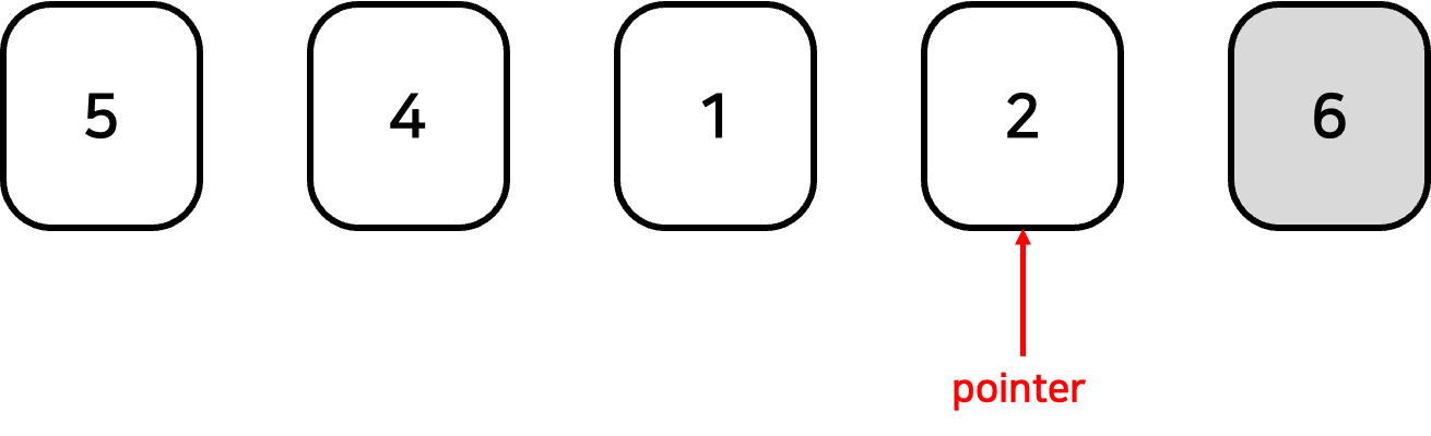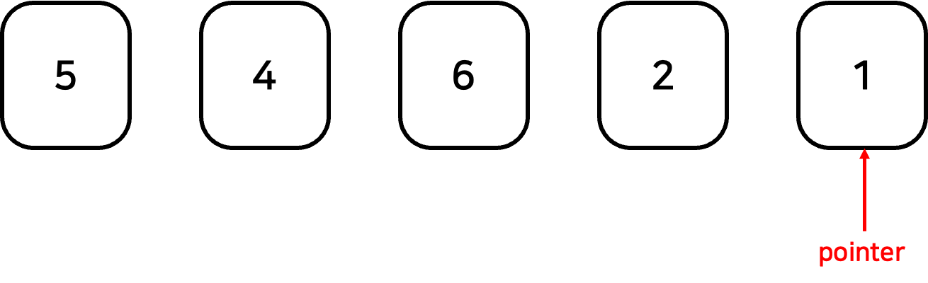 1. [5, 4, 6, 2, 1] 로 이루어진 배열이 있다고 하자. 포인터를 맨 마지막 원소에 위치시킨다.