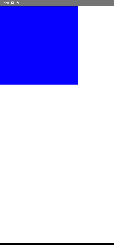 위 코드를 실행하면 다음과 같이 300dp의 크기를 가진 파란 박스가 나오고, 해당 박스를 클릭하면 클릭 이펙트와 함께 "조세영의 Kotlin World" 토스트가 보여진다.