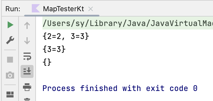 이 문제를 해결하는 근본적인 방법은 Iteration이 진행될 때 MutableMap 객체에 변경을 가하지 않는 것이다. 이를 위해서는 별도의 리스트를 선언한 후, 해당 리스트에 제거해야할 원소를 입력하고, Iteration이 마쳐지면 제거를 호출해야 한다. 예를 들어 다음과 같이 작성하면 된다.