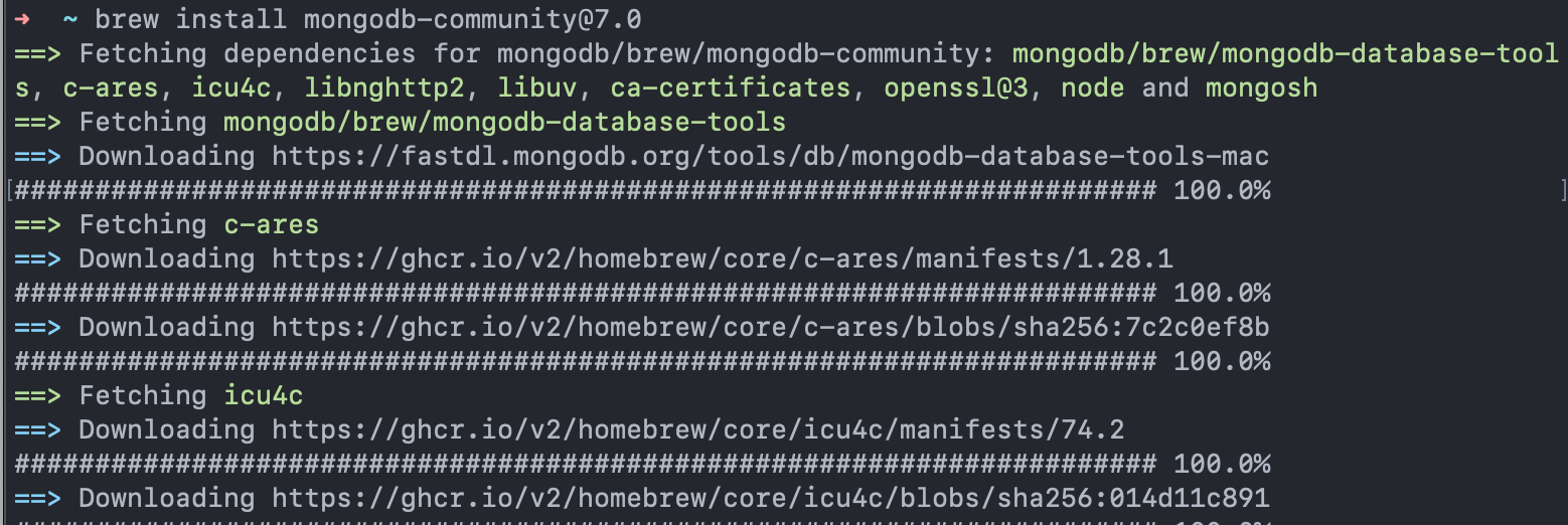 다음 명령어를 실행해 MongoDB Community Edition 7.0 버전을 설치할 수 있다.