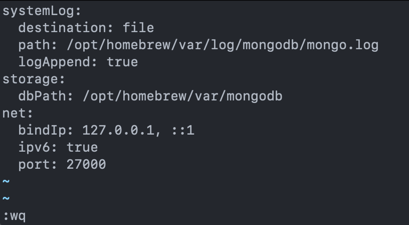 - macOS 인텔 칩 : /usr/local/etc/mongod.conf