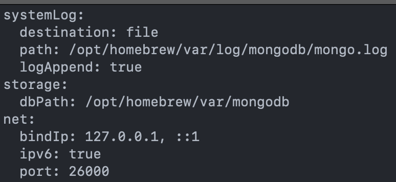 - macOS 실리콘 칩(M1, M2, M3) : /opt/homebrew/etc/mongod.conf