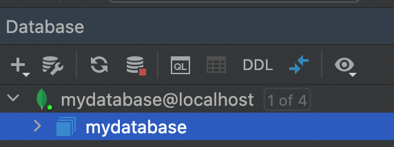 모든 설정을 완료했으면 OK를 누르면 그림5와 같이 Database 탭에서 mydatabase가 조회되는 것을 볼 수 있다.