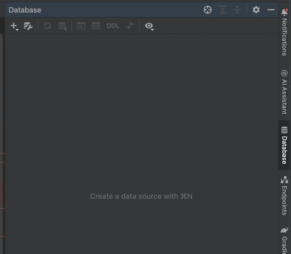 먼저 IntelliJ 에서 오른쪽 사이드 바에 있는 Database 탭을 연다.