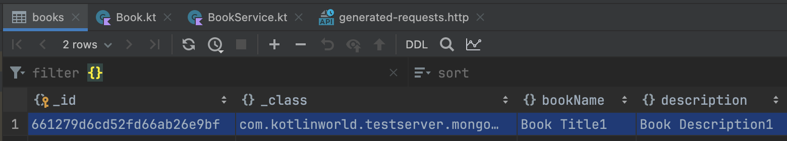 findOne using query: { "id" : "661279d6cd52fd66ab26e9bf"} fields: Document{{}} for class: class com.kotlinworld.testserver.mongo.Book in collection: books