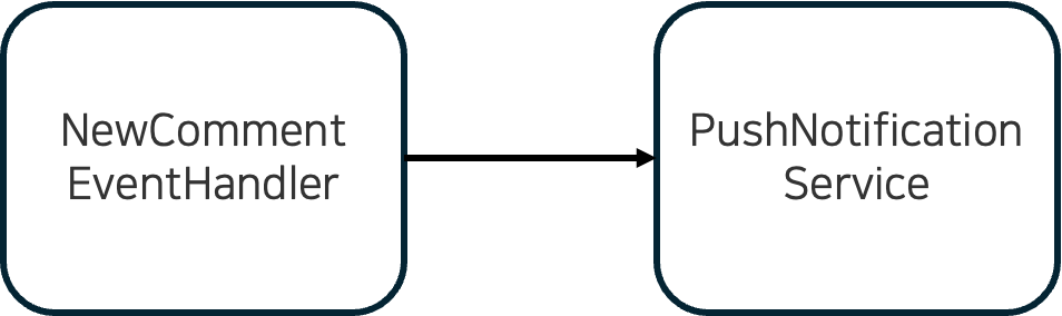 위의 코드에서 볼 수 있듯이 NewCommentEventHandler 클래스는 PushNotificationService 클래스를 직접 사용하고 있다.
