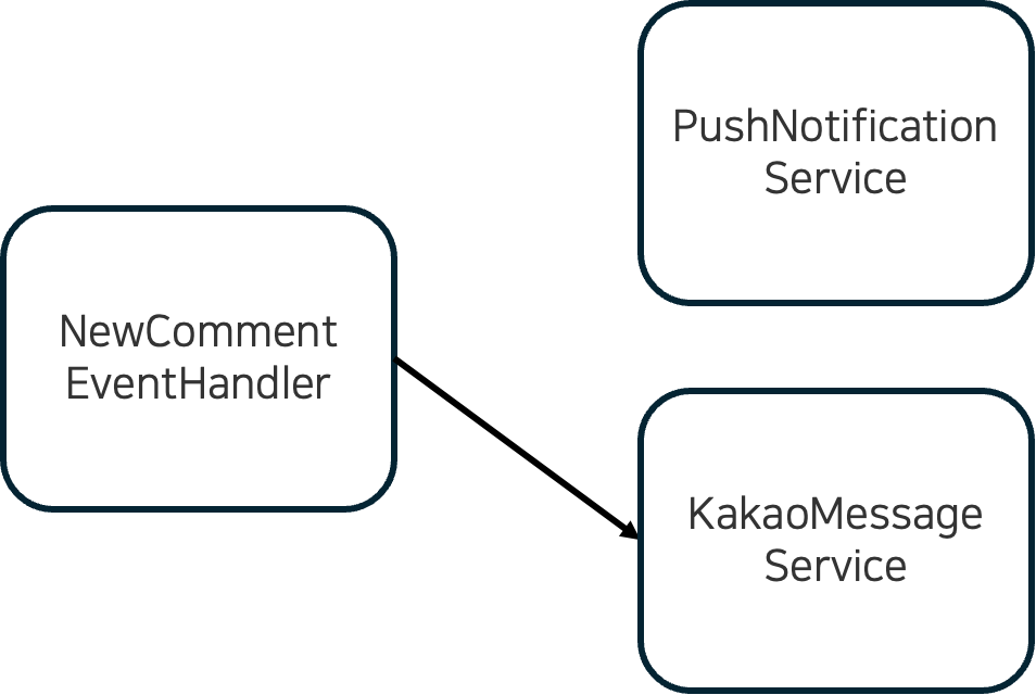 이렇게 되면 NewCommentEventHandler는 PushNotificationService나 KaKaoMessageService 양쪽을 모두 사용할 수 있게 되며, 이를 통해 유연성이 올라간다.