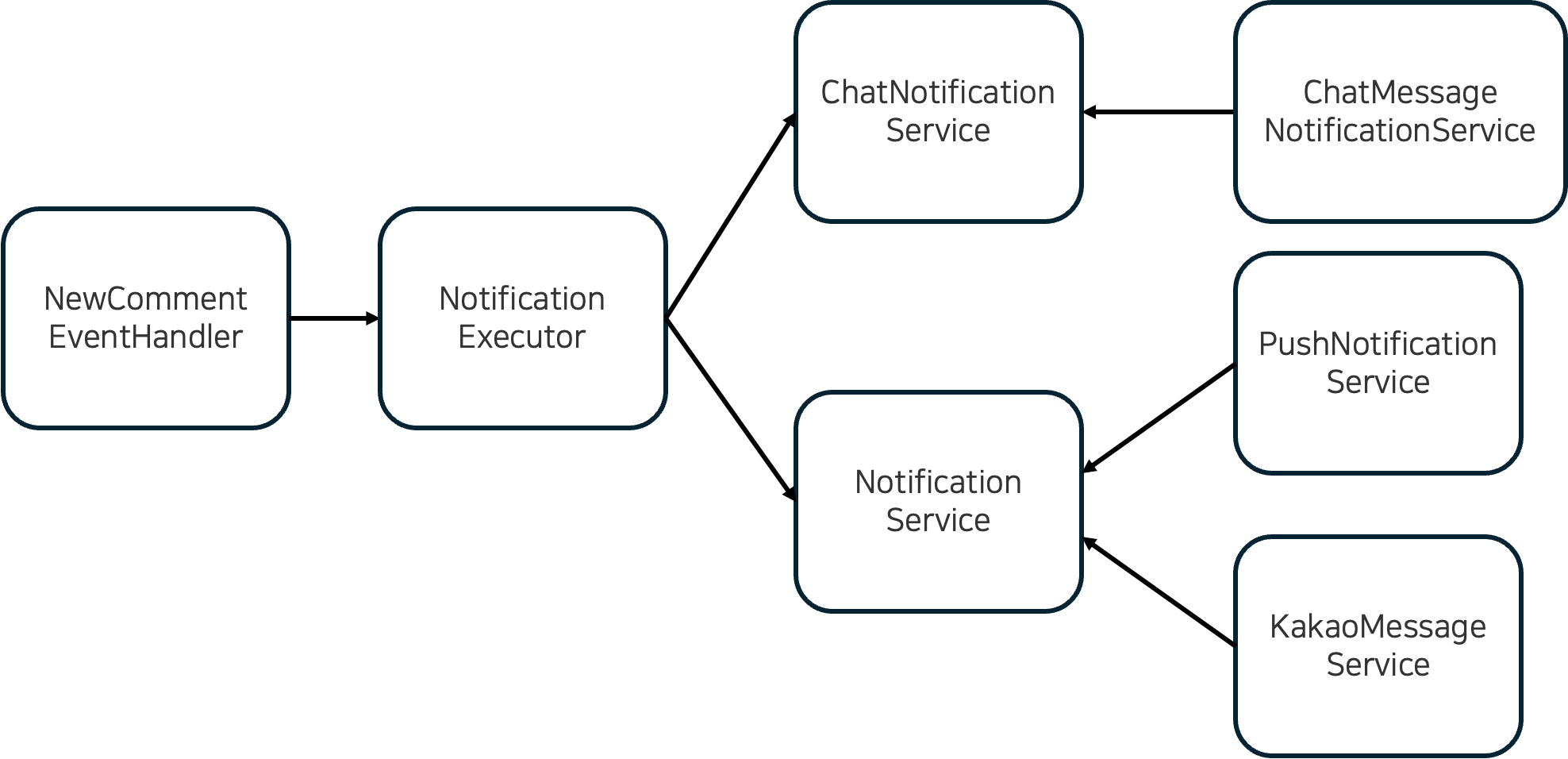 그러면 사용자는 NotificationExecutor만을 보고 작업을 수행할 수 있게 된다.