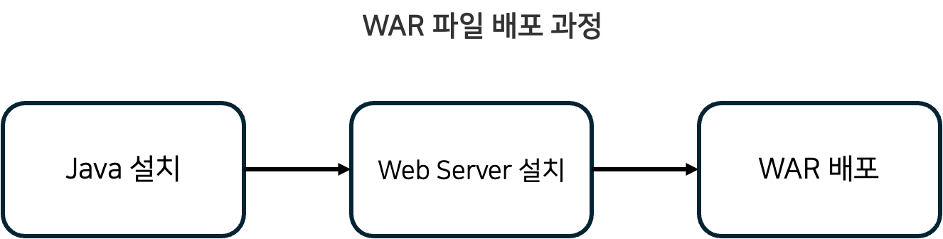 WAR 파일을 배포하기 위해서는 JRE와 Web Server가 있어야 한다. 따라서 우선 JDK나 JRE을 설치 한 후 Web Server을 설치하고 해당 WebServer에 WAR파일을 배포하면 된다. 예를 들어 Tomcat을 사용하는 경우 WAR파일을 webapps 디렉토리에 복사하거나, Tomcat Manager을 사용해 WAR 파일을 직접 선택해 배포해야 할 수 있다.