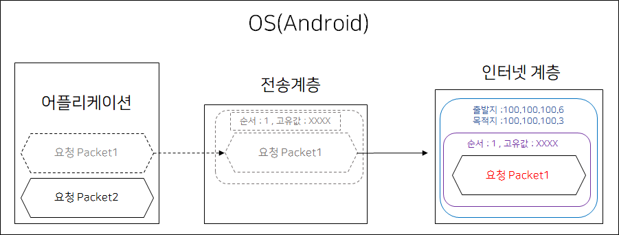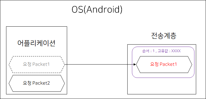 <그림3>에서는 Packet1을 전송계층이 어플리케이션 계층으로부터 전달 받는 상황을 가정한다.