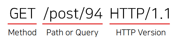 시작 라인은 HTTP Method, 경로 및 질의 정보(Path or Query), HTTP Version 세가지로 이루어진다.